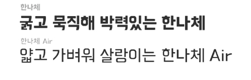 배달의 민족에서 만든 한나 air체 개인적으로 가장 많이 사용하는 서체. 자매품 - 한나는 열 한살체 / 도현체