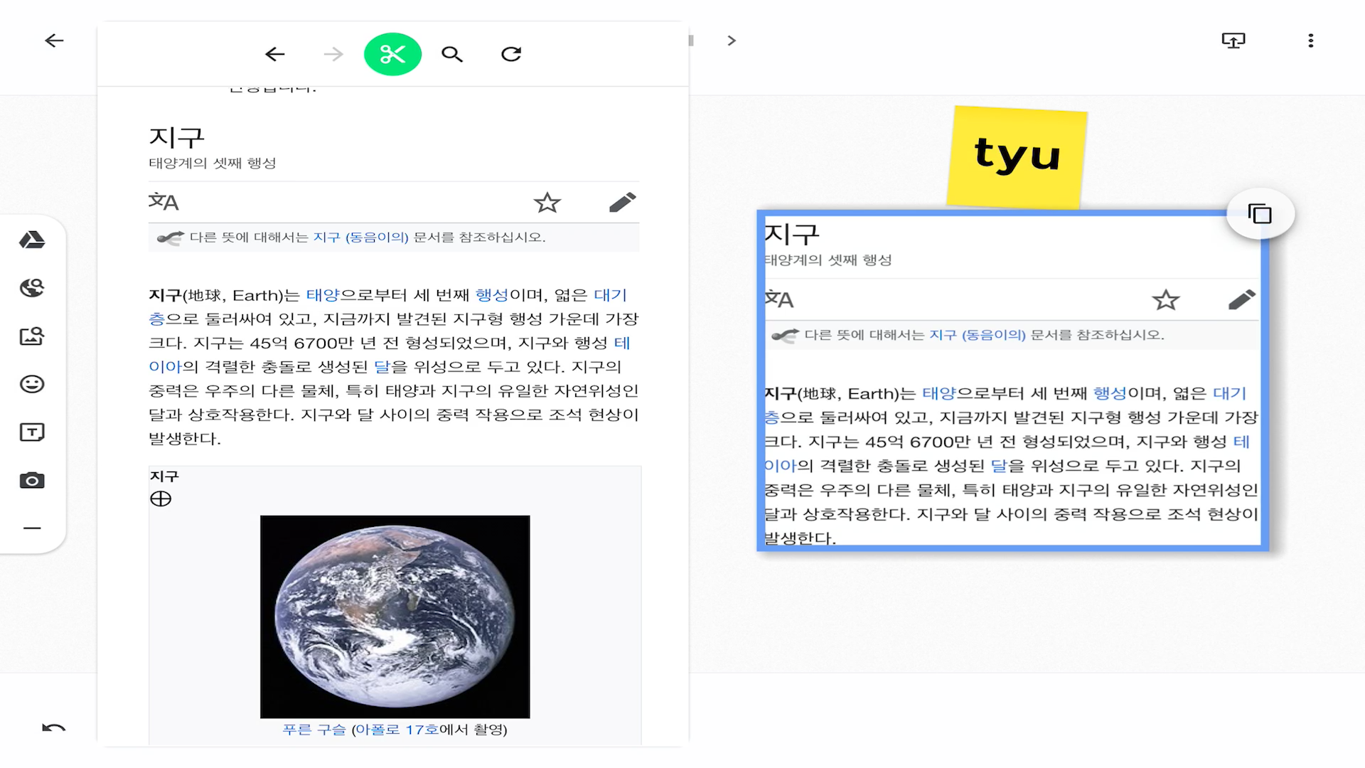 인터넷 브라우져를 열고 검색해서 스크랩 할 수 있는 기능