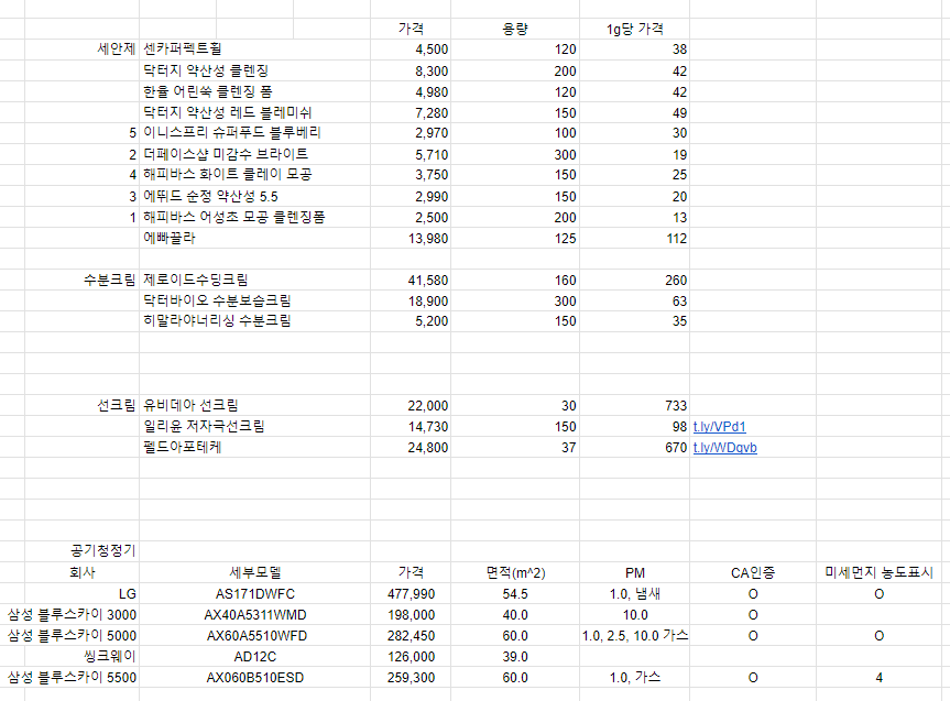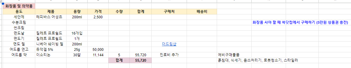 -필수소비품 목록ㅣ합리적 소비 비교표