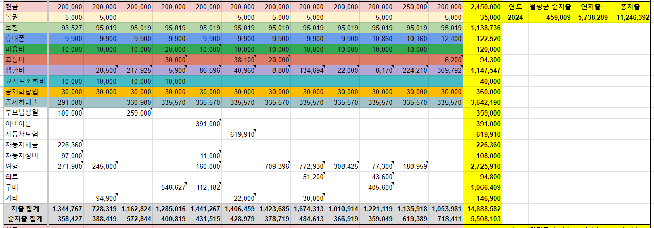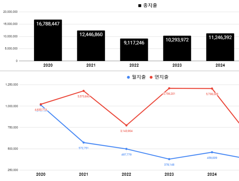 -1년 지출 기록ㅣ합계 자동화ㅣ그래프 정리