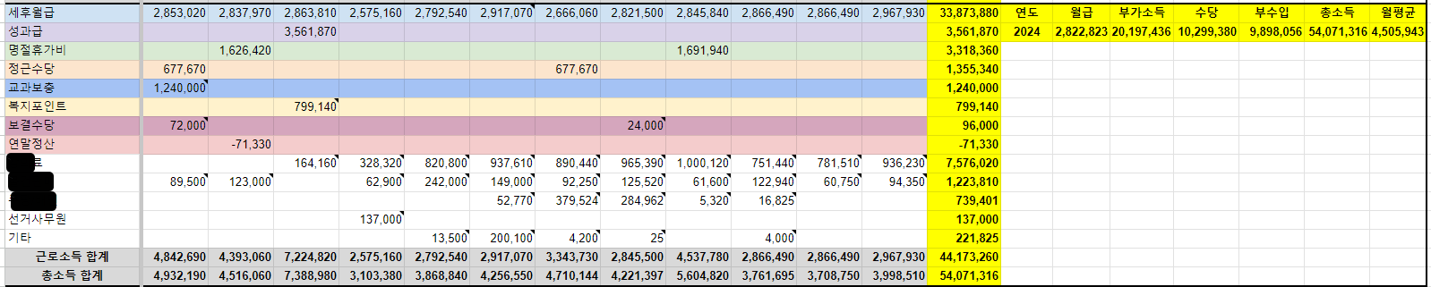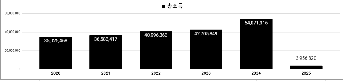 -1년 수입 기록ㅣ합계 자동화ㅣ그래프 정리