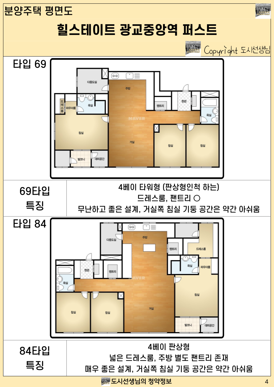 공통적으로 거실이 조금 좁을수 있다는 아쉬움이 있고, 84타입은 주방이 실제로 어떤 모습일지 잘 모르겠는데 ㄱ자가 아니라 조금 좁거나, 뭔가 옵션이 없다면 약간 좁을수 있을것 같습니다.