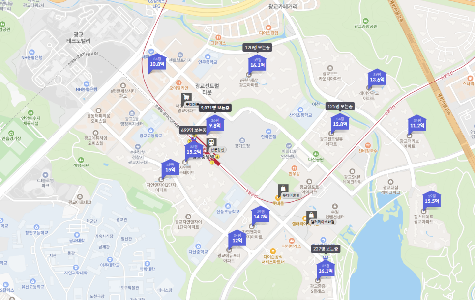 10.8억으로 실거래가 찍혀있는 광교푸르지오월드마크는 입주도 이번 단지보다 빠른 15년식이고, 광교중앙역 초역세는 아니므로 적절한 비교대상은 아닙니다.