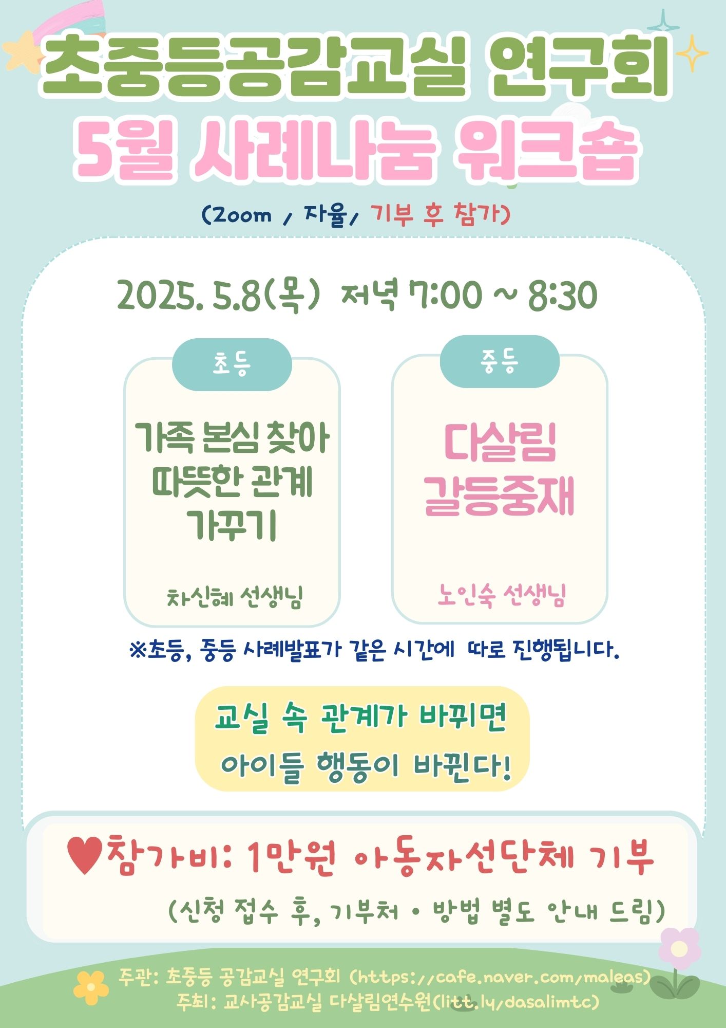 🎁초중등 공감교실 5월 사례 나눔 워크숍 안내