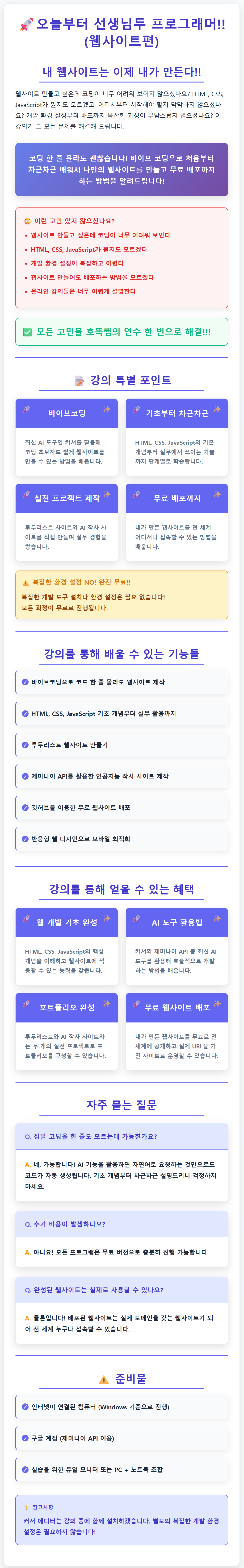 ✅ 요즘 AI 로 웹사이트 쉽게 만든다는 소리는 들었는데 어디서부터 시작해야 할지 몰라 시도도 못해보셨나요?