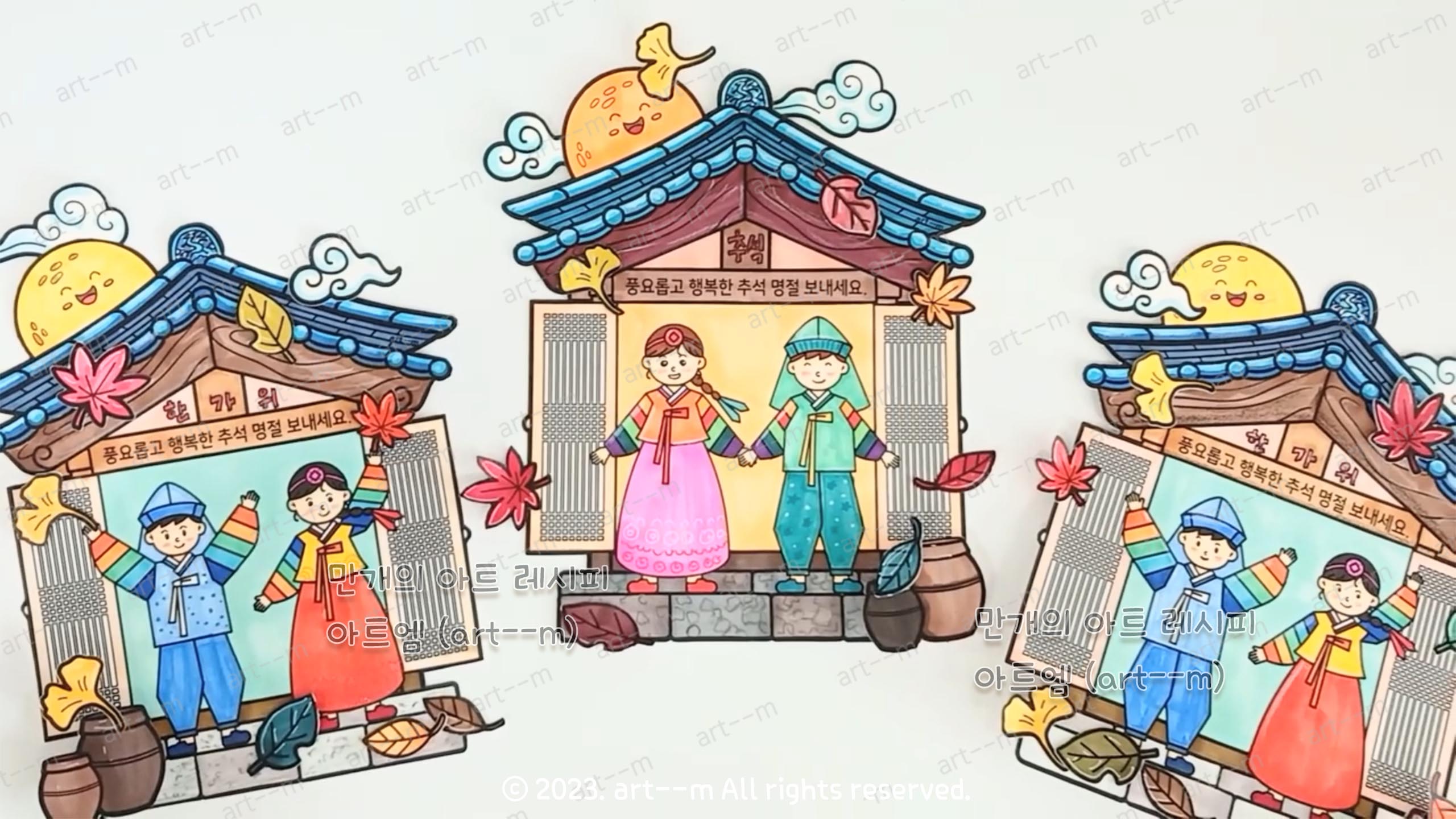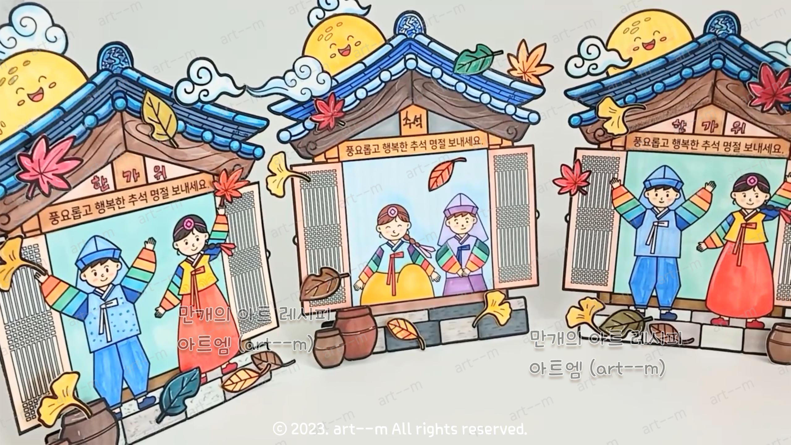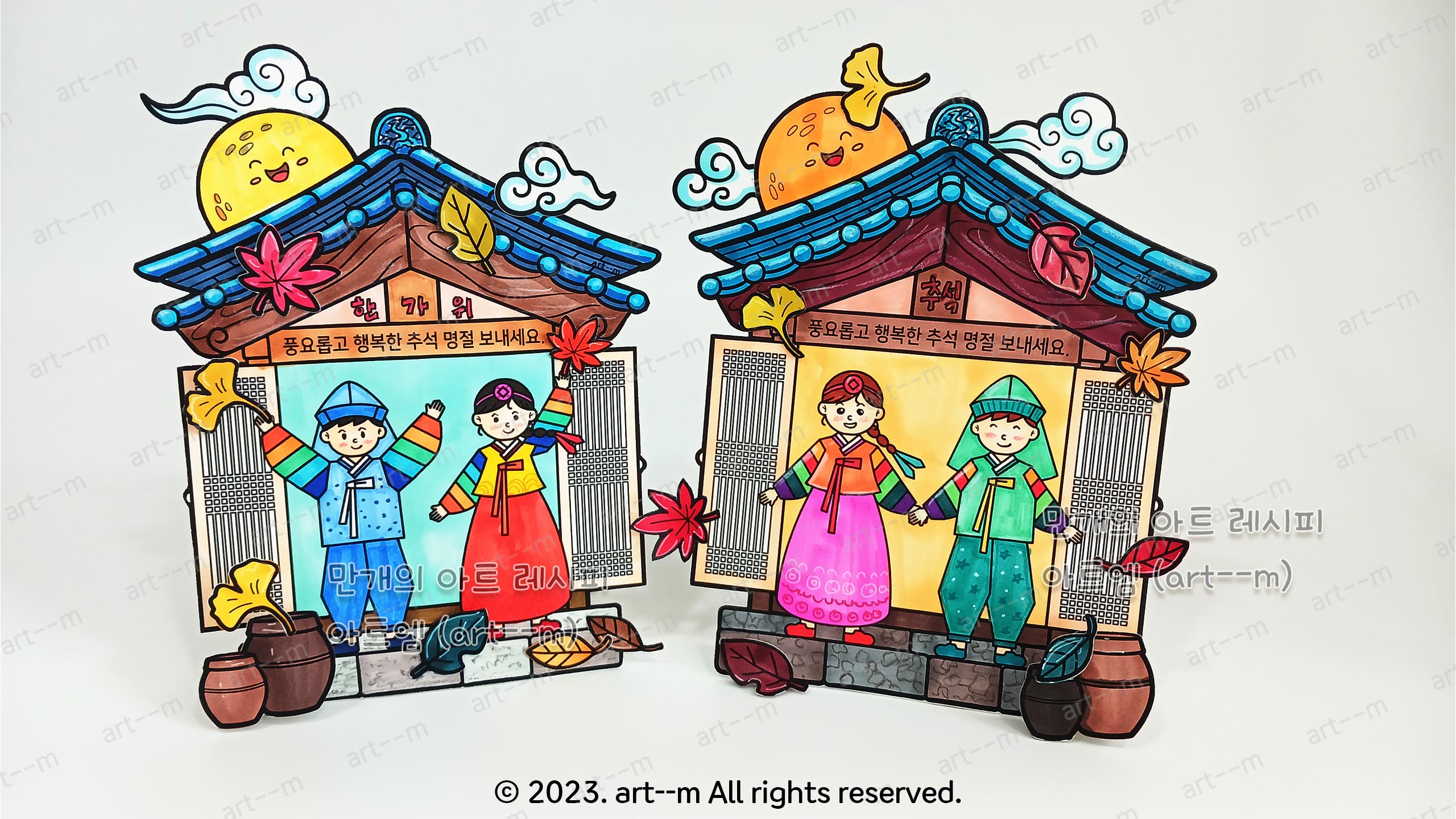 #추석미술#추석만들기#추석미술활동#추석도안#한옥풍경그림#한옥꾸미기#가을미술#가을미술활동#명절미술#명절미술활동