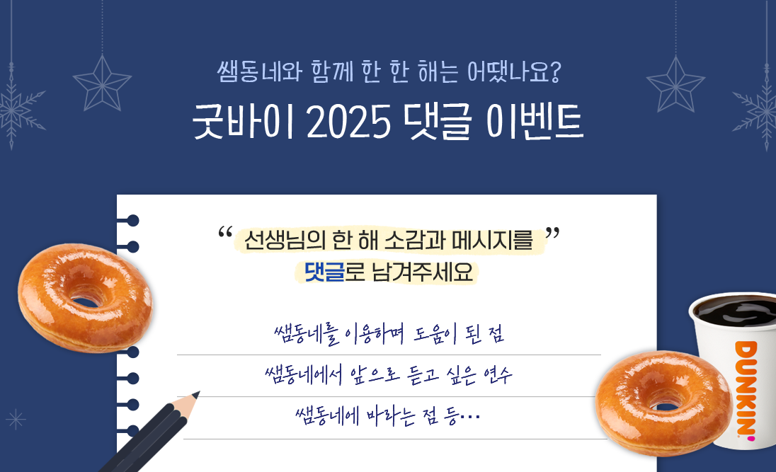 당첨자 발표는 2026.1.8(목) 에 쌤구 채널을 통해 진행되며, 썜동네 회원정보에 기입된 휴대폰 번호로 경품 교환이 가능한 기프티콘이 LMS 발송됩니다.