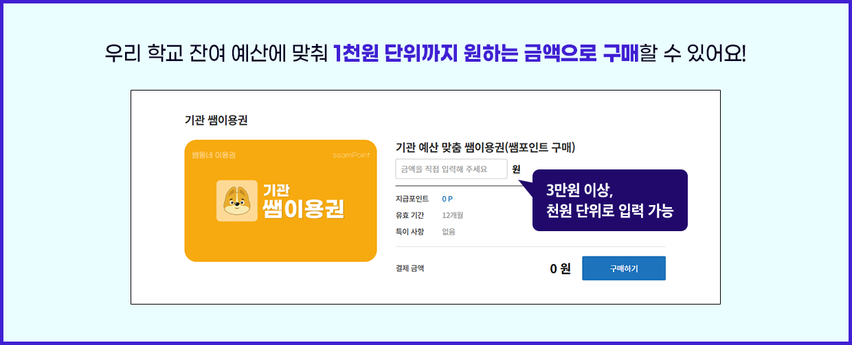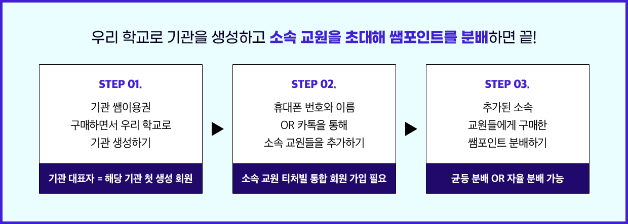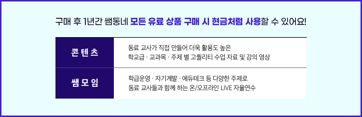 첫 구매 이벤트 혜택 : 이벤트 기간 내 기관 쌤이용권 첫 구매 회원에 한해 제공 (ID 당 1회)