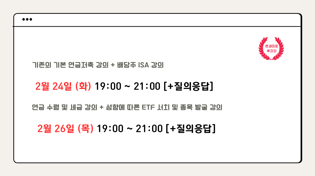 이번 강의에서는 연금저축펀드, IRP와 관련된 세부 내용과 세금, 수령 ETF 선택 등 연금저축투자와 관련된 모든 것.