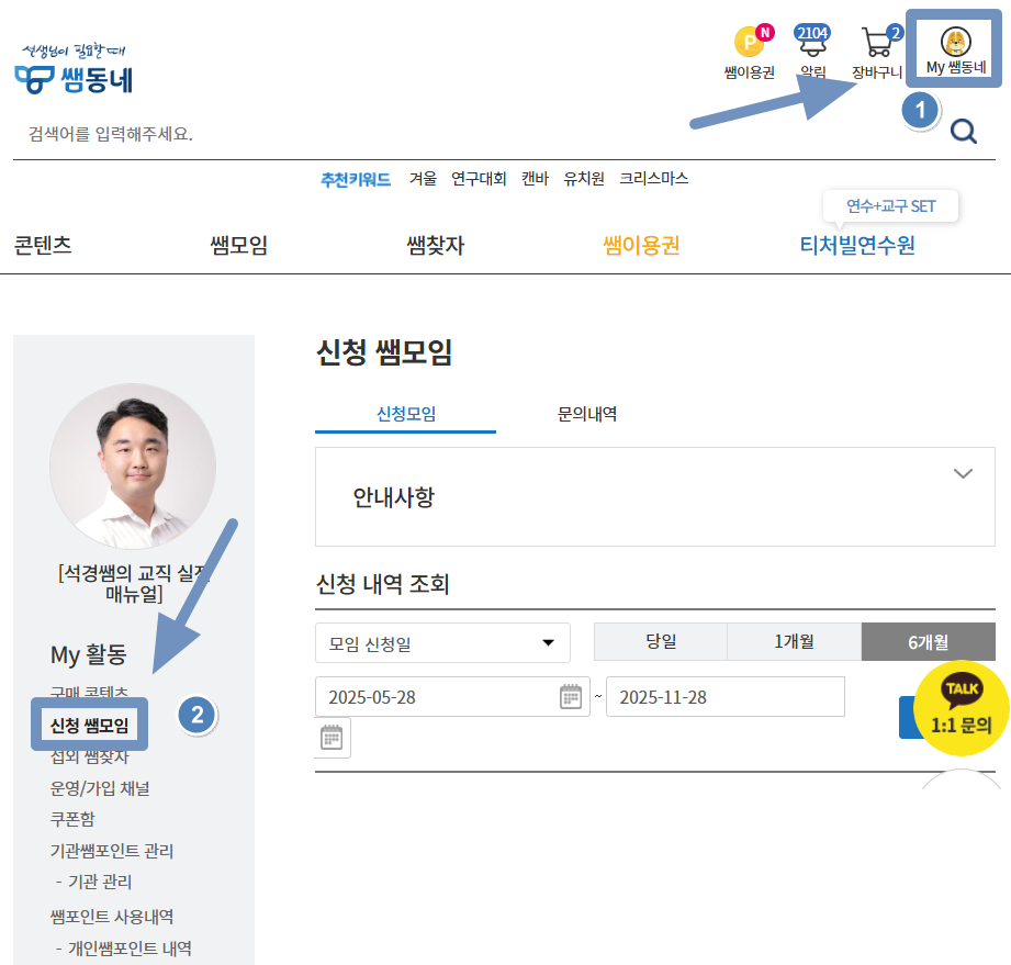 [My 쌤동네] - [신청 쌤모임] 에 자료와 복습영상 주소가 업로드 됩니다.