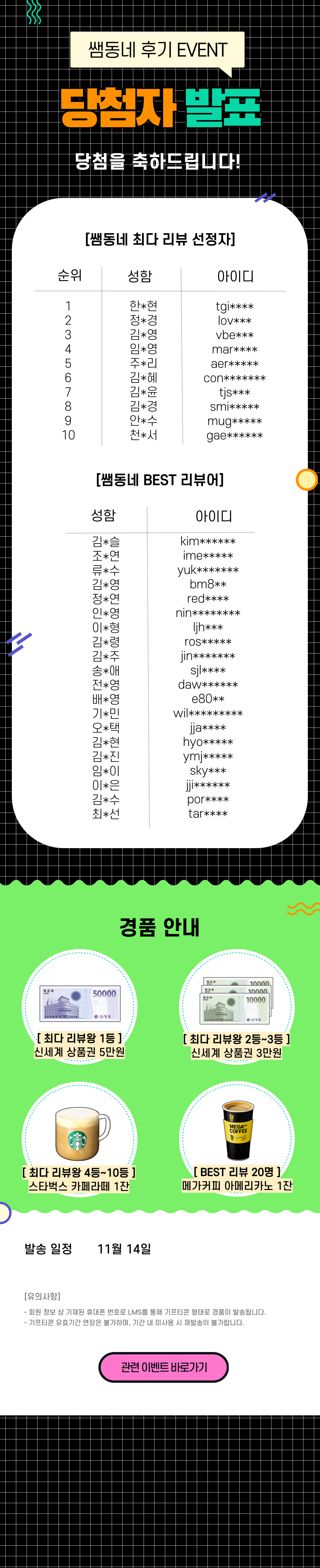 [당첨자 발표] 쌤동네 10월 후기 이벤트 당첨자 발표