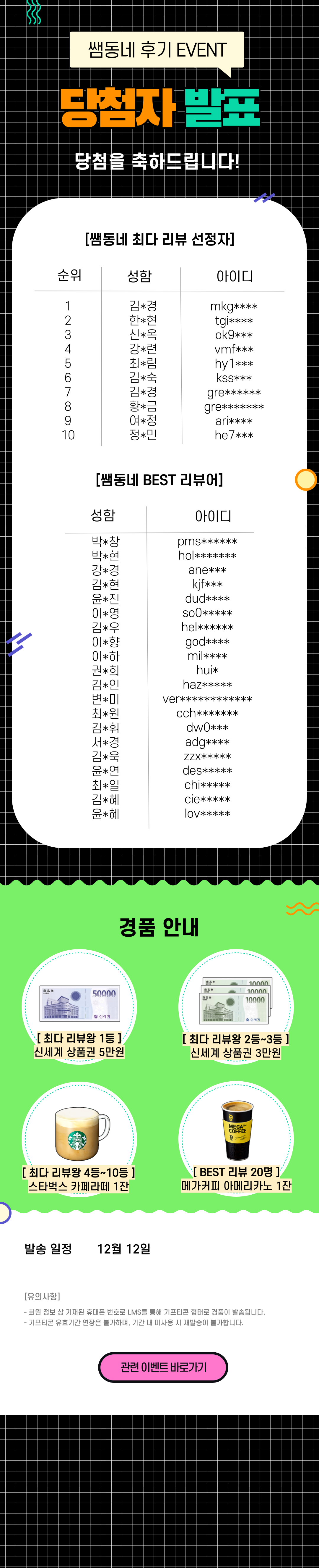 [당첨자 발표] 쌤동네 11월 후기 이벤트 당첨자 발표