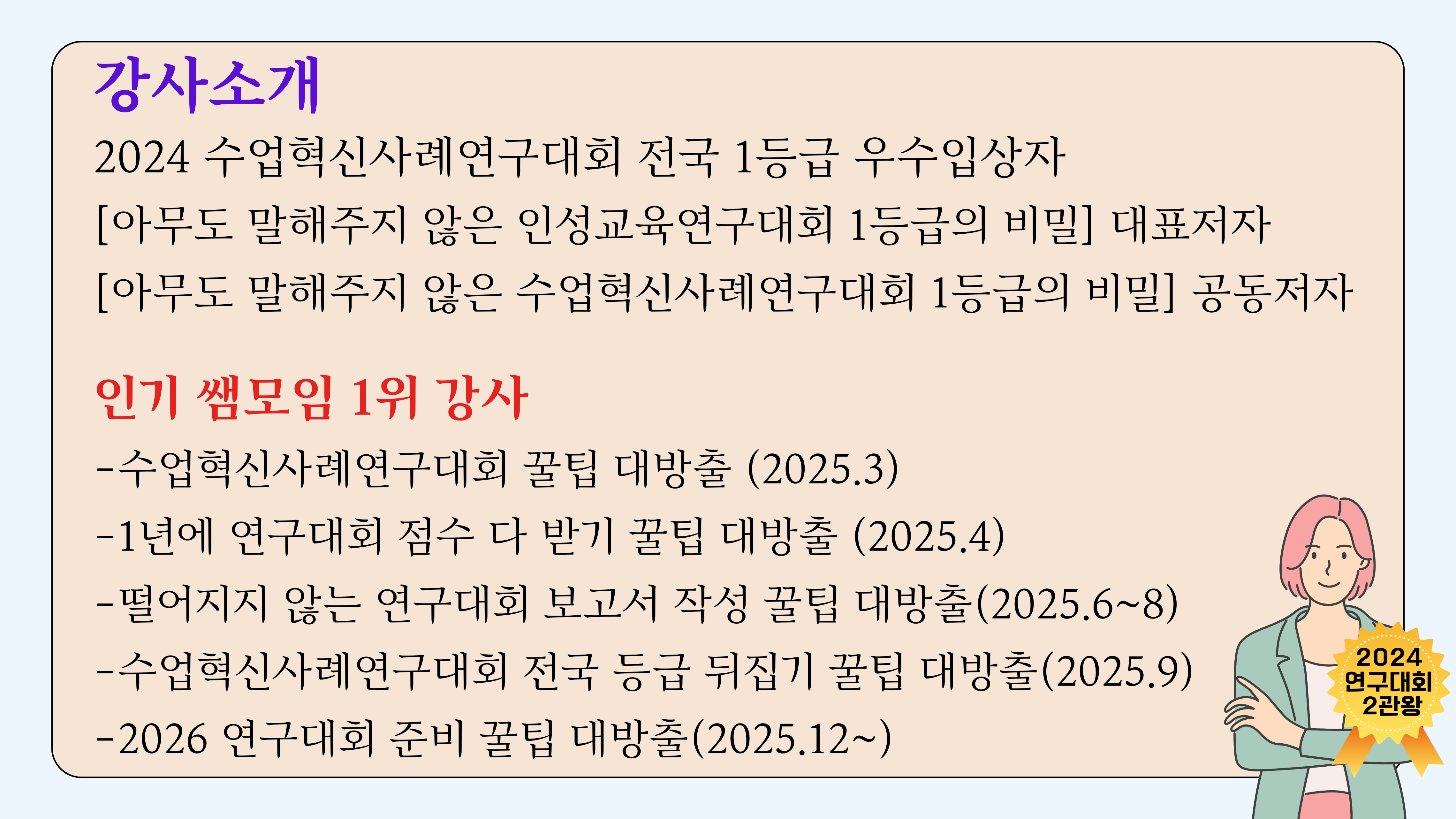2. 재개봉 라스트콜까지 진행했던 [1년에 연구대회 점수 다 받기 꿀팁 대방출] 연수