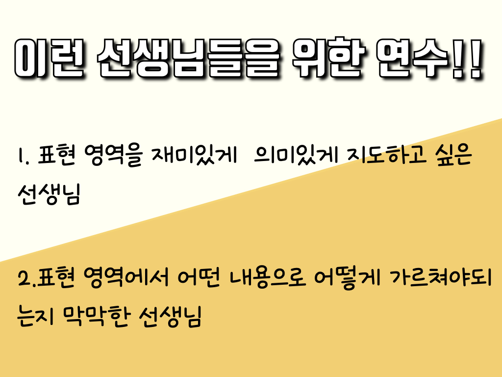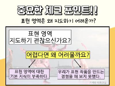 10월 주제는 표현 영역입니다. 표현 영역은 지도가 참 어렵습니다. 2가지 이유가 있다고 생각하는데요.