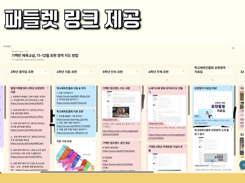 연수와 함께 패들렛 링크로 10월 체육 수업에 필요한 자료 공유합니다.