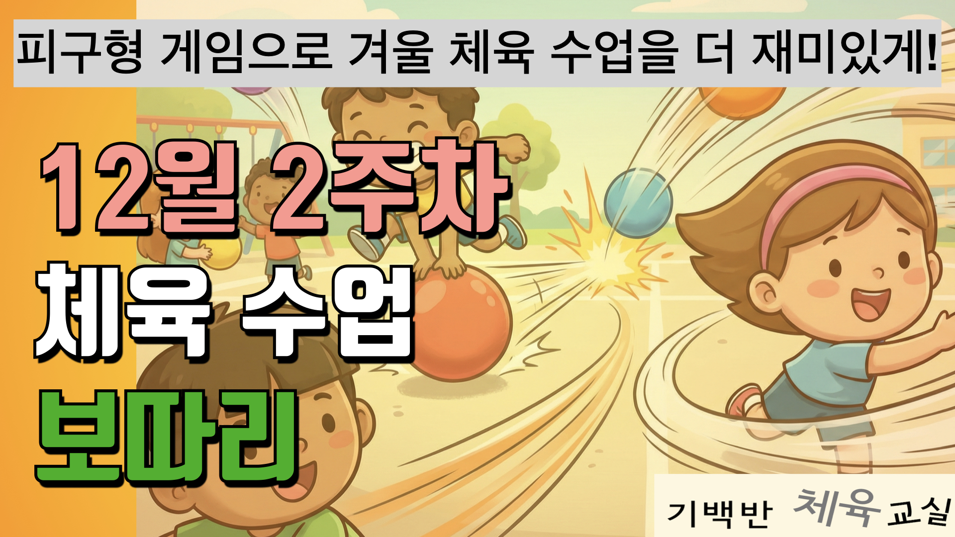 초등학생의 수준에 맞게 변형된 안전하고 재미있는 피구형 게임들입니다.
