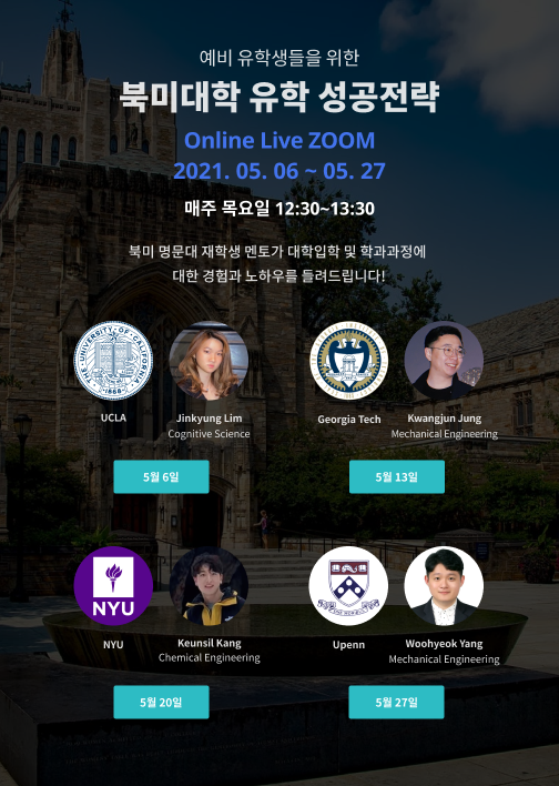 7월 8월에도 해외 대학에 재학중인 한인 유학생의 성공전략 웨비나가 준비되어 있습니다.