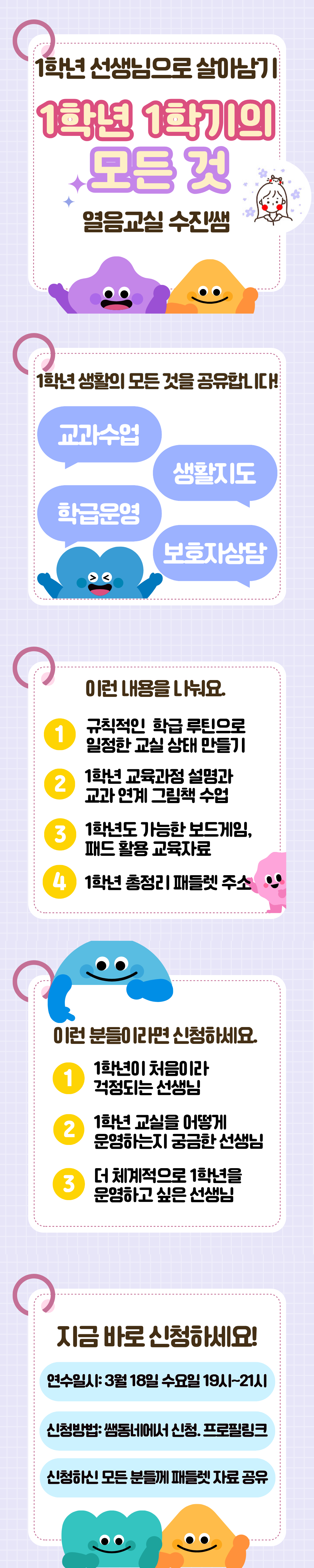 1학년을 하며 쌓인 노하우를 공유하기 위한 연수를 개설하였습니다.